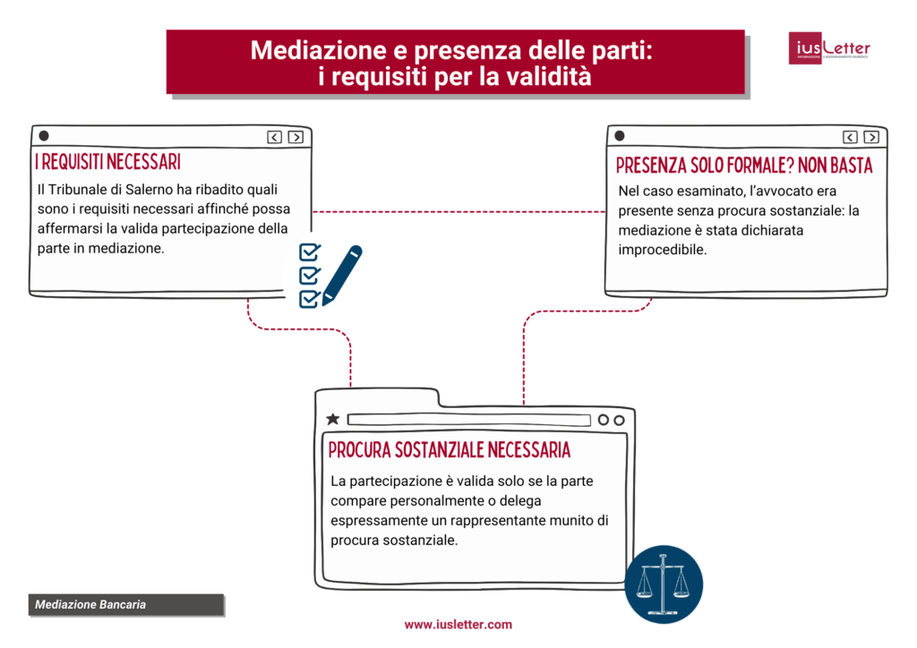 Il Tribunale di Salerno ha ribadito quali sono i requisiti necessari affinché possa affermarsi la valida partecipazione della parte in mediazione.